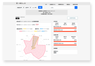 企業の基本情報、詳細情報、労働環境情報を入力するとグラフと評価が生成され、全体像を把握できます。