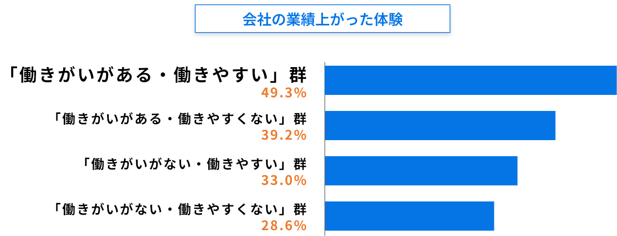 働きがい・働きやすさが良好な企業は2人に1人が業績アップを体験しています。