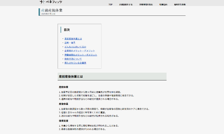 企業検索サイト「ベネフィッツ」に公開