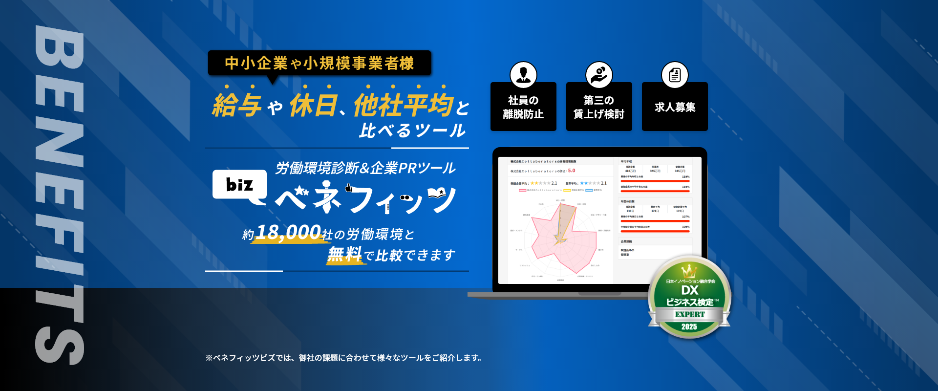 ベネフィッツビズは、職場環境改善/売上アップ/生産性向上/DX等の課題解決する